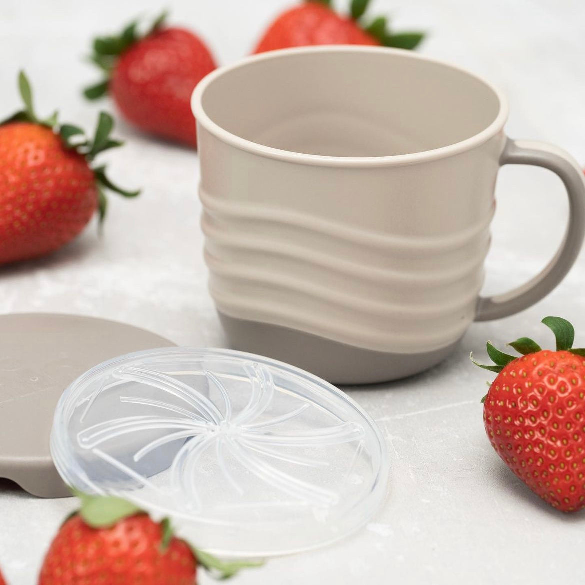 ●柔らかく取り出しやすいのに、お菓子がこぼれないシリコン製蓋で赤ちゃんの指先や手を使う練習に